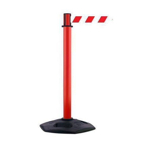 Tensabarrier Este kumijalalla, pylväät, joissa on kumijalka, soveltuvat sekä sisä- että ulkokäyttöön vaativammissa ympäristöissä. Jokaisessa pylväässä on jousikuormitettu 3,65 m rullavyö.