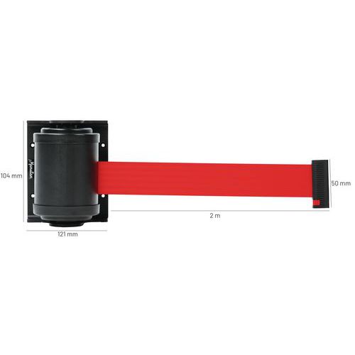 Ulosvedettävä nauha seinään asennettavalla kiinnikkeellä. Kasetti kääntyy 180°. Kiinnittimet mukana. Erinomainen tuote rajaukseen.
