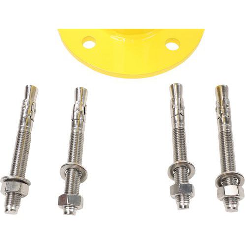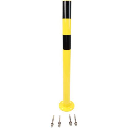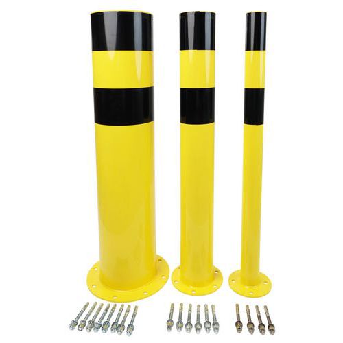 Monikäyttöinen teräksinen suojapylväs. Hyvin näkyvät värit kertovat vaarasta. Asennus valettavan levyn läpi. Koneiden, hyllyjen ja rakennusten kulmien suojaamiseen tai liikennejonojen rajaamiseen.