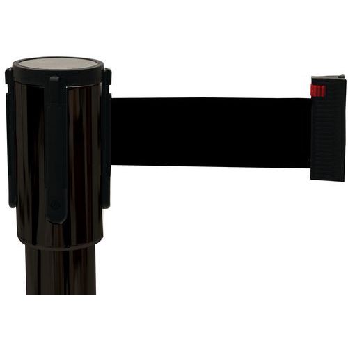 Sopii erinomaisesti jonotusalueiden ja kävijöiden hallintaan. Hihnat voidaan vetää kokonaan sisään ja ne lukittuvat itsestään. Tasainen kelaus estää tapaturmia. Kuminen pohja takaa vakauden. Saatavilla väreissä punainen, keltainen/musta, punainen/valkoinen ja musta.