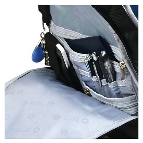 - Kannettavan tietokoneen reppu, jossa kolme lokeroa – tietokoneelle, 10,1’’ tabletille ja tarvikkeille.