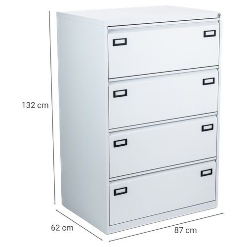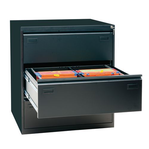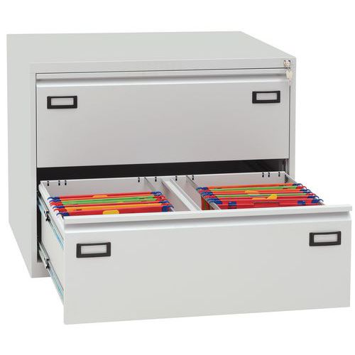 Kaatumissuojus estää useamman kuin yhden laatikon avaamisen kerrallaan. Koko laatikon levyinen kädensija tarjoaa hyvän otteen. Siirrettävän jakajan avulla laatikkoon voidaan järjestää tila taitteellisille kansioille. Takuu (vuosia) : 10 vuotta