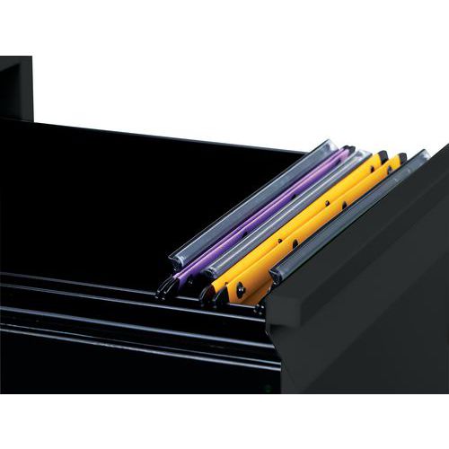 Tukeva hitsattu kaappi jauhemaalauksella. Keskuslukko. Jokaiseen laatikkoon mahtuu n. 110 A4-kansiota. Kokonaan avautuvien laatikoiden ansiosta kansioita on helppo käsitellä. Kaatumissuojus estää useamman kuin yhden laatikon avaamisen kerrallaan. Koko laatikon levyinen kädensija tarjoaa hyvän otteen. Perinteinen asiakirjakaappi A4-, folder- tai big folder -kansioille.