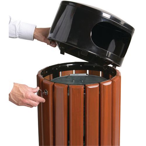 | Tavaranimike | Roskakori 40 L, Tilavuus: 40 L, Laukkujen lukumäärä: 1, Aukko: Halkio, Materiaali: Puu, Jätetynnyri |