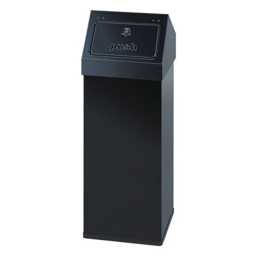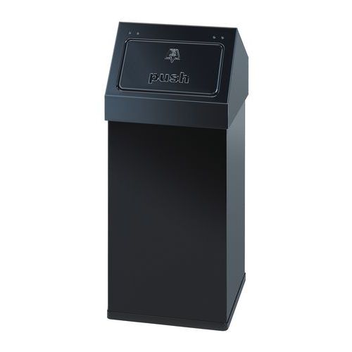 - Alumiinista tai ruostumattomasta teräksestä valmistettu roskakori työntöläpällä.
