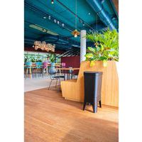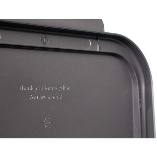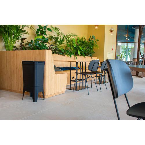 Kestävä roskakori, joka on valmistettu 100 % kierrätetystä polypropeenista PMD-jätteestä ja on siksi 100 % pyöreä ja kierrätettävä.
