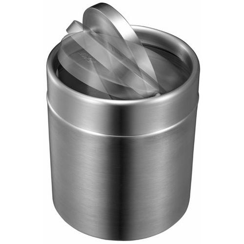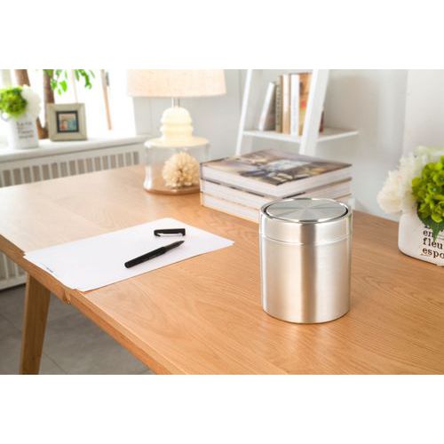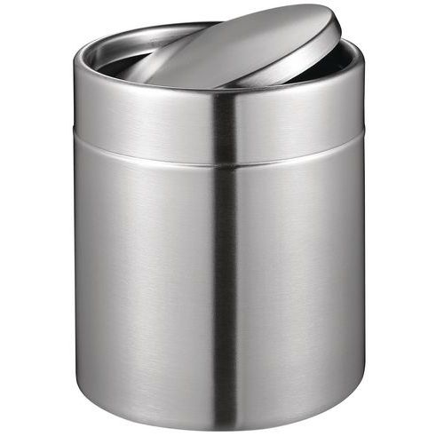 Kaunis muotoilu tälle pienelle, mattapintaisesta ruostumattomasta teräksestä valmistettuun roskakoriin.