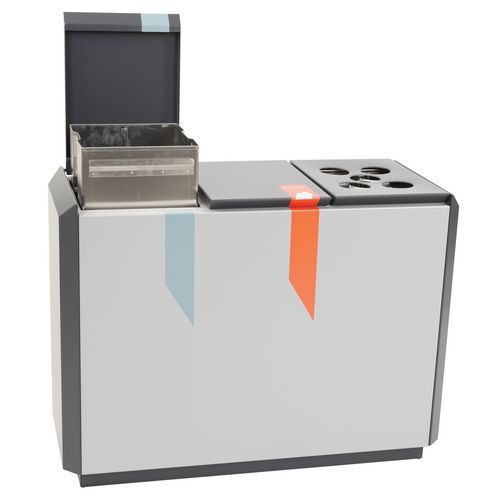| Tavaranimike | Roskakori RecycloStar 3 astia kupin kannella Vepabins, Tilavuus: 165 L, Aukko: Halkio, Materiaali: Metalli |