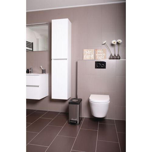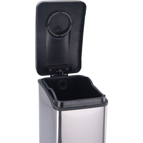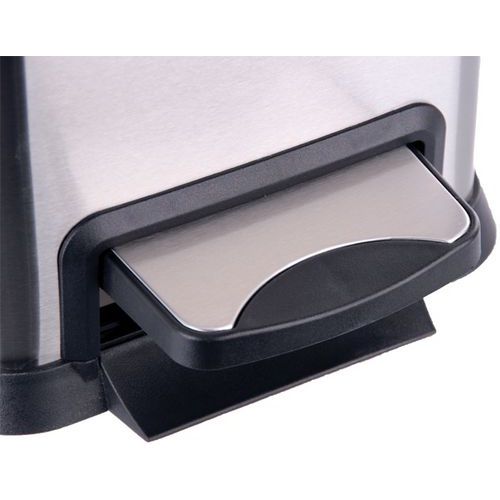 Matista ruostumattomasta teräksestä valmistettu suorakaiteen muotoinen poljinkori, jossa on kostutettu muovikansi ja muovinen sisäsäiliö.