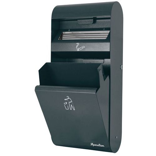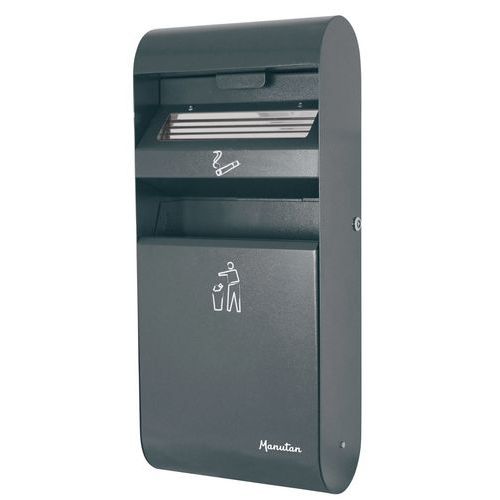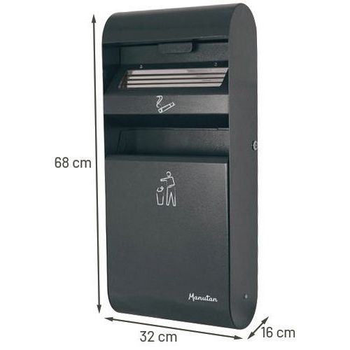 | Tavaranimike | Roskakori tuhkakupilla, seinä 14 + 3 l, Tuhka-astia, tilavuus: 3 L, Väri: Tummanharmaa, Materiaalit: Teräs |