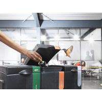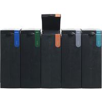 Moduulissa on muovinen sisäsäiliö ja värillinen tarra, joka ilmaisee jätevirran (hollantilainen teksti).