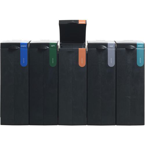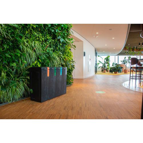 Tämä jätteiden erottelumoduuli on valmistettu 100 % kierrätetystä polypropeenista, joka on peräisin rakennus- ja purkujätteistä sekä isoista jätteistä.