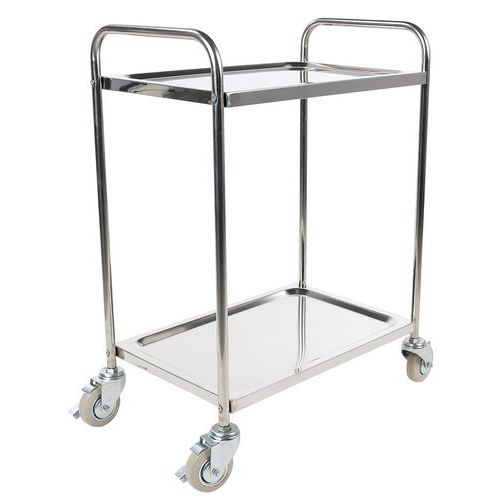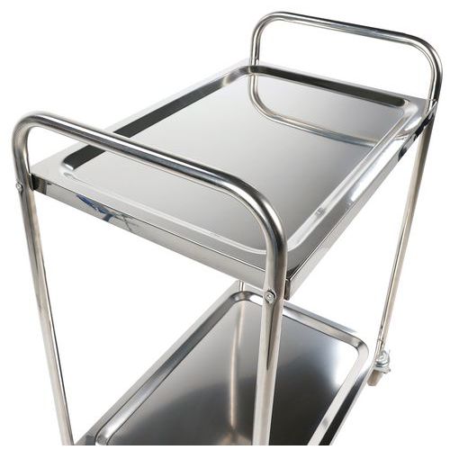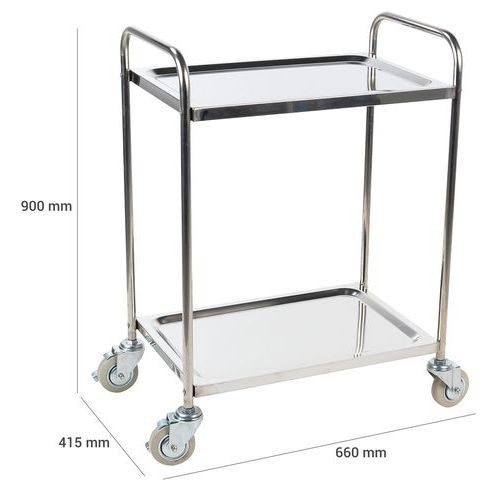 | Tavaranimike | Ruostumaton teräsvaunu, 2 tasoa, Kapasiteetti: 100 kg, Kokonaiskorkeus: 900 mm, Kokonaisleveys: 415 mm |