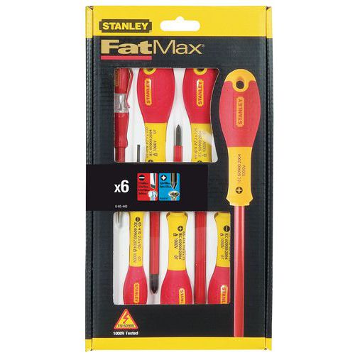 | Tavaranimike | Ruuvimeisselisarja 6 osaa VDE-eristetty 1000 V Stanley®, Ref valmistaja: 0-65-443, Käyttö: Ruuvi |