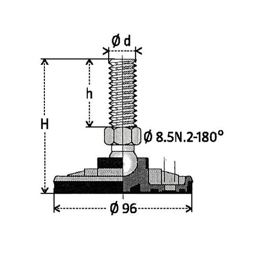 Säädettävä jalka polypropeenia, Tangon materiaali: Teräs, Varsi, pituus: 61 mm, Säädettävä jalka