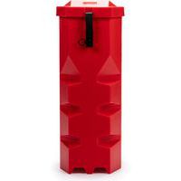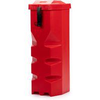 - Ylhäältä täytettävä säilytyslaatikko 6 kg palosammuttimelle, mukana muovinen solki ja sokka nopeaa hätätilanteessa pääsyä varten.