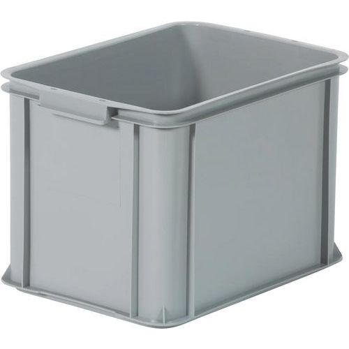 Elintarvikekelpoinen New York-säilytyslaatikko, valmistettu iskunkestävästä HD-polyeteenistä – ihanteellinen kuljetukseen, varastointiin ja säilytykseen. Kestää useimpia happoja, öljyjä ja emäksisiä liuottimia. Laatikossa on tukevat kahvat lyhyillä sivuilla ja tasainen pohja, joka soveltuu rullaradoille. Erittäin vakaa pinottaessa. Moduulimitoitettu standardoidulle EUR/EPAL-eurolavalle.