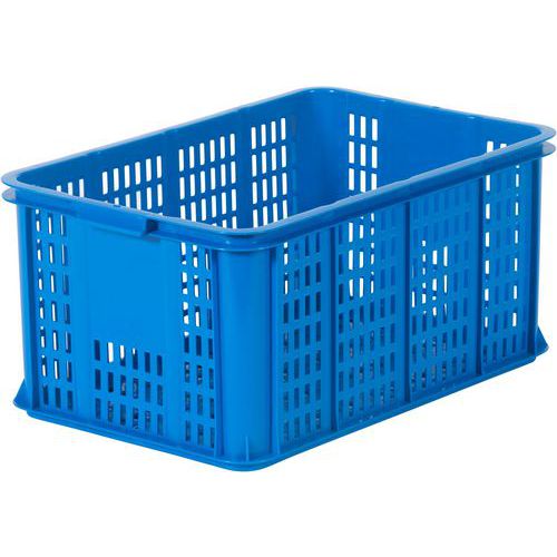 Elintarvikekelpoinen New York-säilytyslaatikko, valmistettu iskunkestävästä HD-polyeteenistä – ihanteellinen kuljetukseen, varastointiin ja säilytykseen. Kestää useimpia happoja, öljyjä ja emäksisiä liuottimia. Laatikossa on tukevat kahvat lyhyillä sivuilla ja tasainen pohja, joka soveltuu rullaradoille. Erittäin vakaa pinottaessa. Moduulimitoitettu standardoidulle EUR/EPAL-eurolavalle.