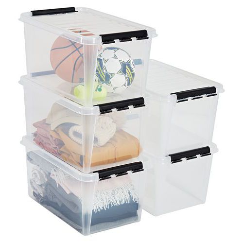 - Jokainen laatikko toimitetaan kannen ja kestävien kiinnitysklipsien kanssa, jotka pitävät kannen tukevasti paikallaan.
