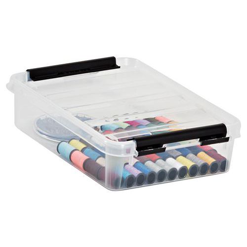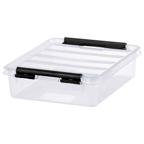 - Jokainen laatikko toimitetaan kannen ja kestävien kiinnitysklipsien kanssa, jotka pitävät kannen tukevasti paikallaan.