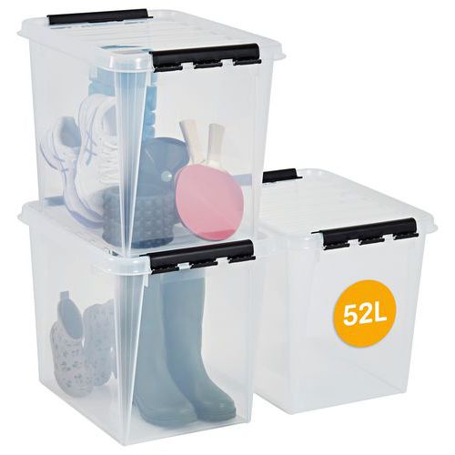 - Jokainen laatikko toimitetaan kannen ja kestävien kiinnitysklipsien kanssa, jotka pitävät kannen tukevasti paikallaan.