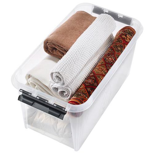 - Jokainen laatikko toimitetaan kannen ja kestävien kiinnitysklipsien kanssa, jotka pitävät kannen tukevasti paikallaan.