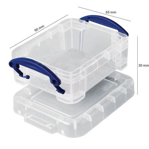 | Tavaranimike | Säilytyslaatiko, läpinäkyvä Really Useful Box, Tilavuus: 0.07 L, Kokonaiskorkeus: 30 mm |