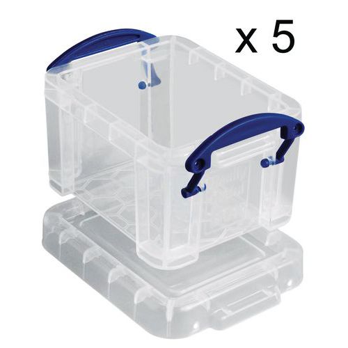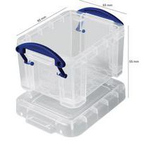 | Tavaranimike | Säilytyslaatiko, läpinäkyvä Really Useful Box, Tilavuus: 0.14 L, Kokonaiskorkeus: 55 mm |