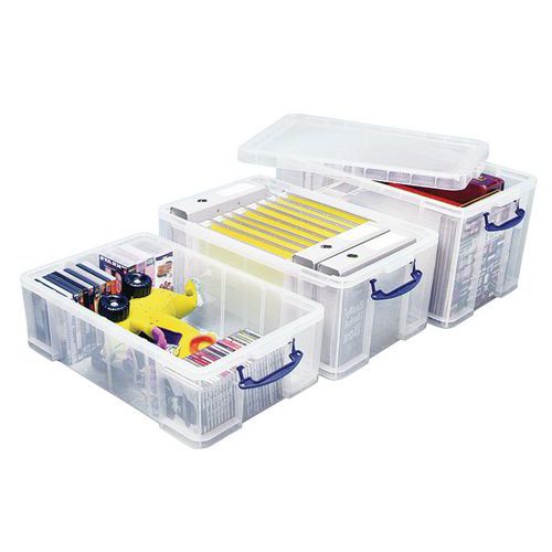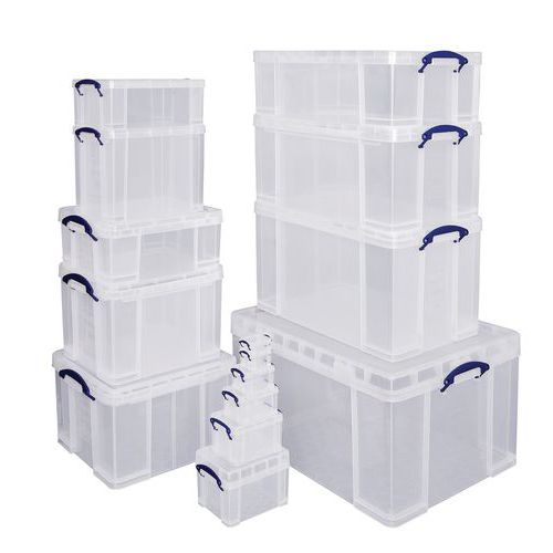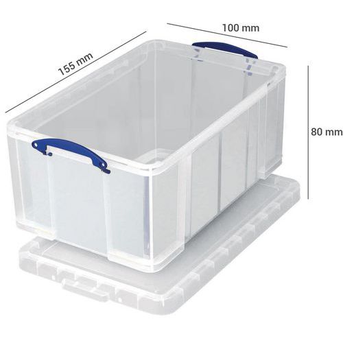 | Tavaranimike | Säilytyslaatiko, läpinäkyvä Really Useful Box, Tilavuus: 0.7 L, Kokonaiskorkeus: 80 mm |