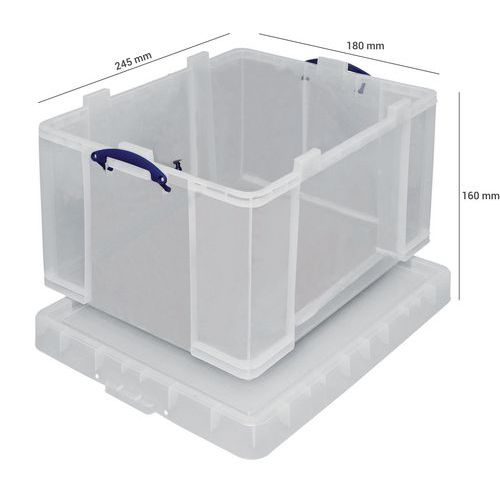 | Tavaranimike | Säilytyslaatiko, läpinäkyvä Really Useful Box, Tilavuus: 3 L, Pinottava: ei, Kokonaiskorkeus: 160 mm |