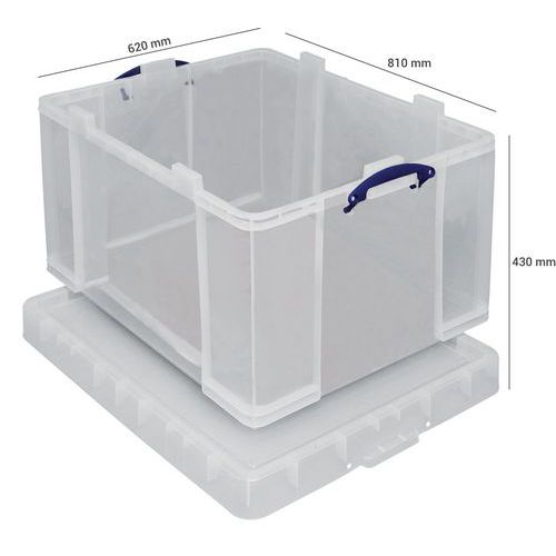 | Tavaranimike | Säilytyslaatiko, läpinäkyvä Really Useful Box, Tilavuus: 145 L, Kokonaiskorkeus: 430 mm |