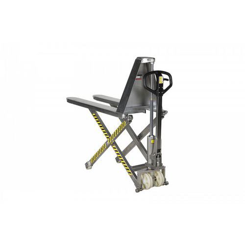 | Tavaranimike | Ruostumaton saksinostin, Kapasiteetti: 1000 kg, Nostokorkeus maks: 800 mm, Paino: 90 kg, Haarukan pyörä |