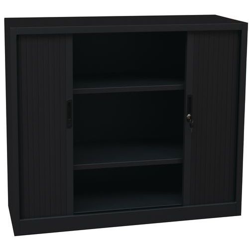 Kompakti ja erittäin helposti käsiteltävä matala kaappi. Hyllyjä voidaan siirtää riippukansioiden säilytystä varten. Naarmuuntumaton epoksipinnoite. Muovisäleovet lukitaan sylinterilukolla. Kaapin mukana toimitetaan 2 avainta sylinterilukkoon.
