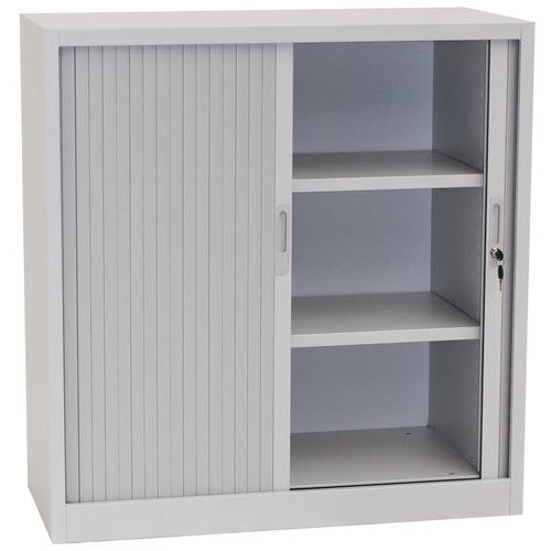 Kompakti ja erittäin helposti käsiteltävä matala kaappi. Hyllyjä voidaan siirtää riippukansioiden säilytystä varten. Naarmuuntumaton epoksipinnoite. Muovisäleovet lukitaan sylinterilukolla. Kaapin mukana toimitetaan 2 avainta sylinterilukkoon.