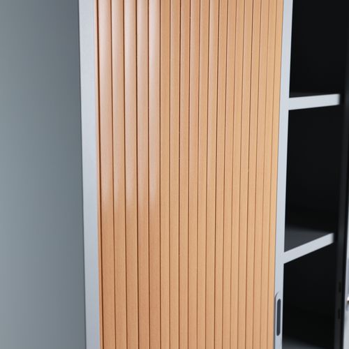 Kompakti ja erittäin helposti käsiteltävä kaappi. Hyllyjä voidaan siirtää riippukansioiden säilytystä varten. Naarmuuntumaton epoksipinnoite. Muovisäleovet lukitaan sylinterilukolla. Kaapin mukana toimitetaan 2 avainta sylinterilukkoon.