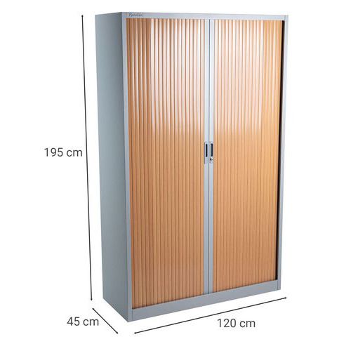 Kompakti ja erittäin helposti käsiteltävä kaappi. Hyllyjä voidaan siirtää riippukansioiden säilytystä varten. Naarmuuntumaton epoksipinnoite. Muovisäleovet lukitaan sylinterilukolla. Kaapin mukana toimitetaan 2 avainta sylinterilukkoon. Paloluokka : M1 Takuu (vuosia) : 10 vuotta Maks paino/hyllytaso (kg) : 45