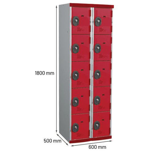 | Tavaranimike | Seamline Optimum®-kaappi, 10 lokeroa, Kaappityyppi: Osastoilla, Materiaali: Teräs, Lkm, lokerot/pylväs: 5 |