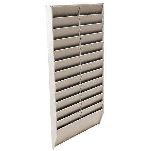 | Tavaranimike | Seinään kiinnitettävä korttipidike, jossa on 24 lokeroa, Väri: Harmaa, Leveys: 199 mm, Materiaali: Polyesteri |