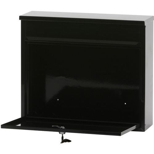 - Seinään kiinnitettävä metallinen postilaatikko, jossa läppä ja lukittava luukku edessä. Aukko: 32 x 4 cm.