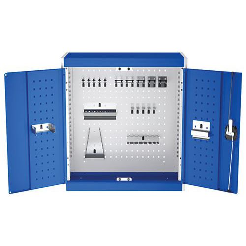 Lukittava teräslevykaappi, jossa Perfo-oviverhous tai laatikon pohja. Kompakti syvyys 300 mm. Mitat PxK 800x700 ja PxK 1050x700 tai 1000 mm. Sinkitty hylly lisävarusteena 1050 mm leveään malliin. Kantavuus 75 kg. Saatavilla ilman kantta, voidaan varustaa tarpeen mukaan tai Perfo-lisävarusteilla. Turvallisuusohjeet: - asenna huonekalu tasaiselle alustalle - kiinnitä se seinään tai väliseinään sopivilla kiinnikkeillä - varo ylittämästä suositeltua enimmäiskuormaa ja varmista, että se jakautuu tasaisesti