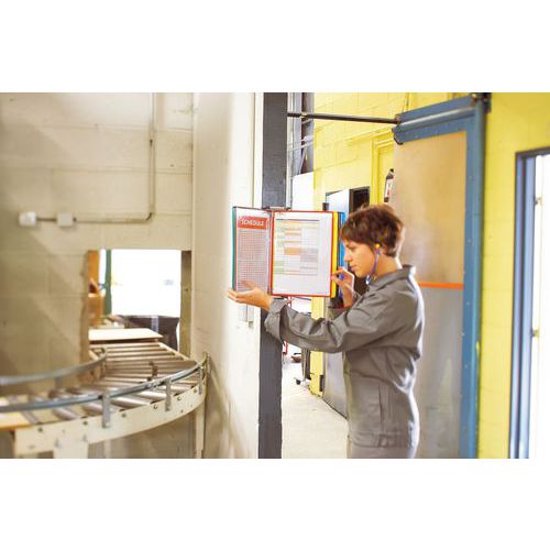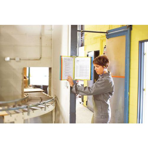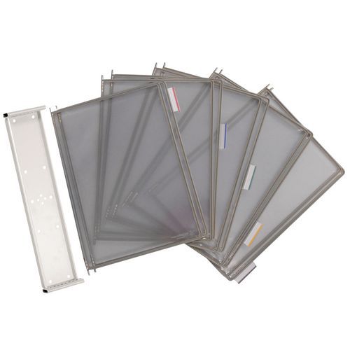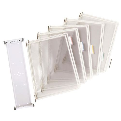 Tarpeiden mukaan muokattava teline tarjoaa rajattomasti mahdollisuuksia. Soveltuu hyvin kaikentyyppisiin tiloihin. Erivärisin luiskoin varustettujen otsakepidinten ansiosta asiakirjat on helppo järjestellä aiheittain. Mukana 10 A4-asiakirjataskua, 5 otsakepidintä (50 mm) liuskoineen (valkoisia ja värillisiä), 4 sivutukea ja kiinnitystarvikkeet. Valmistettu EU:ssa
