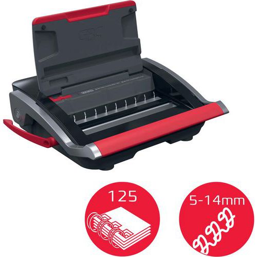 Kone pystyy rei’ittämään jopa 15 arkkia 80 g/m² paperia kerrallaan ja sitomaan jopa 125 arkkia 14 mm metallikierteillä.