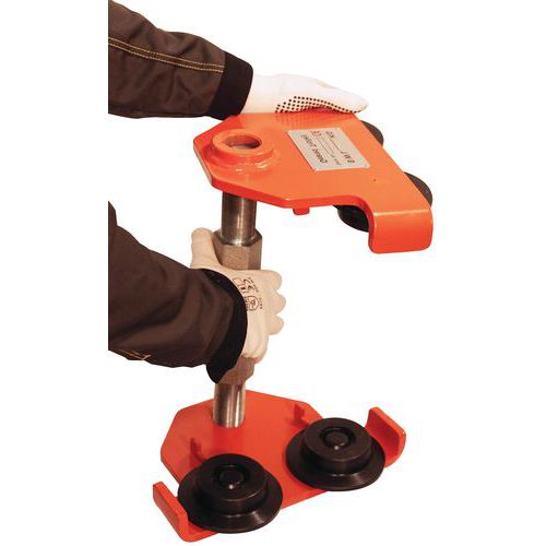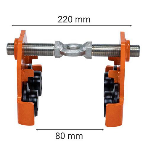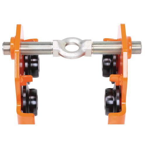 Sopii kaikkiin IPE- ja IPN-palkkimalleihin. Helppo asentaa ja säätää. Korkeudesta menetetään vain hieman, koska talja ripustetaan suoraan akseliin. Putoamis- ja kallistumiseste, kuulalaakeroitu.