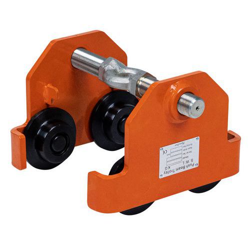 Sopii kaikkiin IPE- ja IPN-palkkimalleihin. Helppo asentaa ja säätää. Korkeudesta menetetään vain hieman, koska talja ripustetaan suoraan akseliin. Putoamis- ja kallistumiseste, kuulalaakeroitu. Takuu (vuosia) : 10 vuotta Kapasiteetti (kg) : 2000