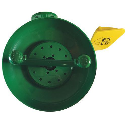 Iskunkestävä vihreä seinään kiinnitettävä silmäsuihku. Silmäsuihkun toimintaa ohjataan selkeästi merkityllä painelevyllä. Silmien huuhtelumahdollisuus on oltava silloin, kun on olemassa silmiä vahingoittavien roiskeiden vaara. Takuu (vuosia) : 10 vuotta