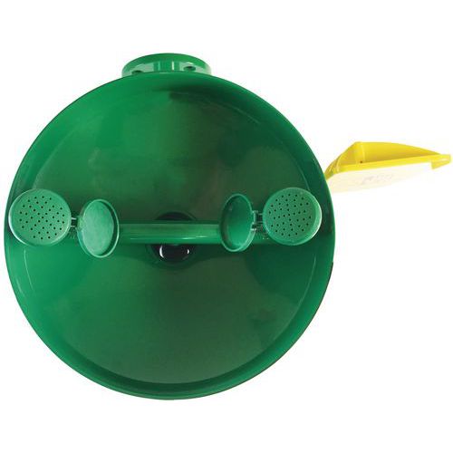 Iskunkestävä vihreä seinään kiinnitettävä silmäsuihku. Silmäsuihkun toimintaa ohjataan selkeästi merkityllä painelevyllä. Silmien huuhtelumahdollisuus on oltava silloin, kun on olemassa silmiä vahingoittavien roiskeiden vaara. Takuu (vuosia) : 10 vuotta