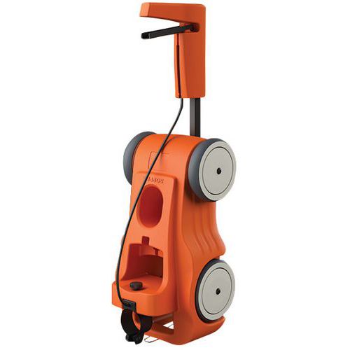 Kärryn kokoaminen tapahtuu ilman työkaluja: aseta vetoaisa ja aerosolituki paikoilleen ja kiristä 2 kiinnitysmutteria käsin.