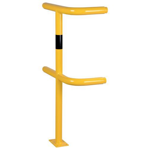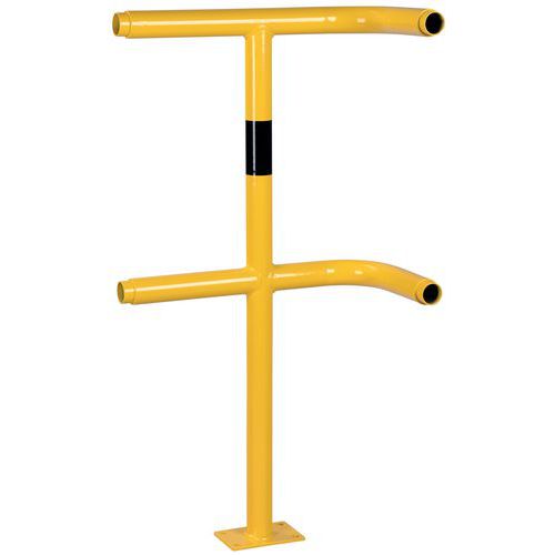 Modulaarisen suojaesteen pylväs. Taattu vakaus kiinnityslevyn ansiosta. Galvanoitu ulkokäyttöä varten. Hyvä näkyvyys keltaisen värin ansiosta, turvaliikenne mustalla raidalla. Helppo asentaa. Järjestelmän yksittäiset osat kiinnitetään ilman ruuveja.eja.