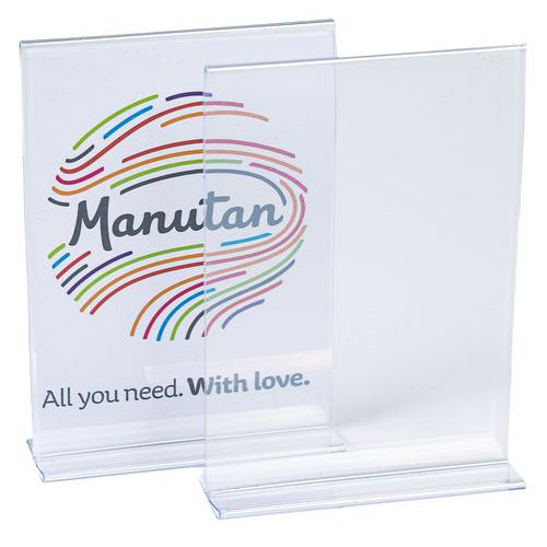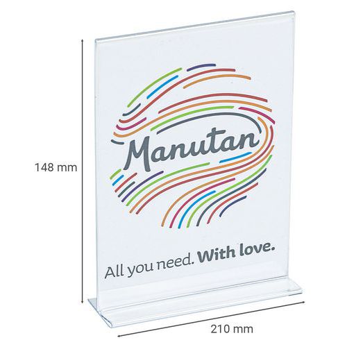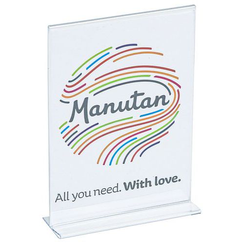 Suora T-mallinen läpinäkyvä esittelyteline pöydälle - Manutan Expert