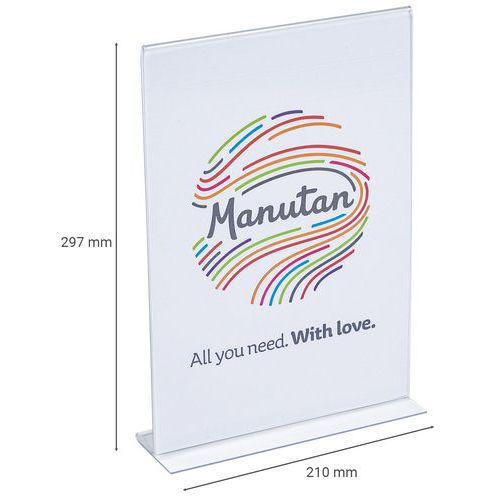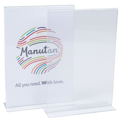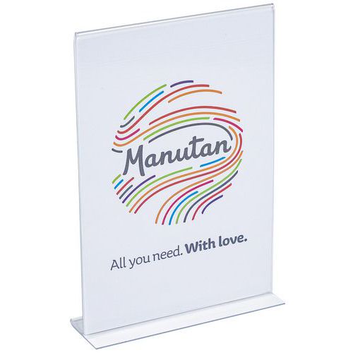Suora T-mallinen läpinäkyvä esittelyteline pöydälle - Manutan Expert